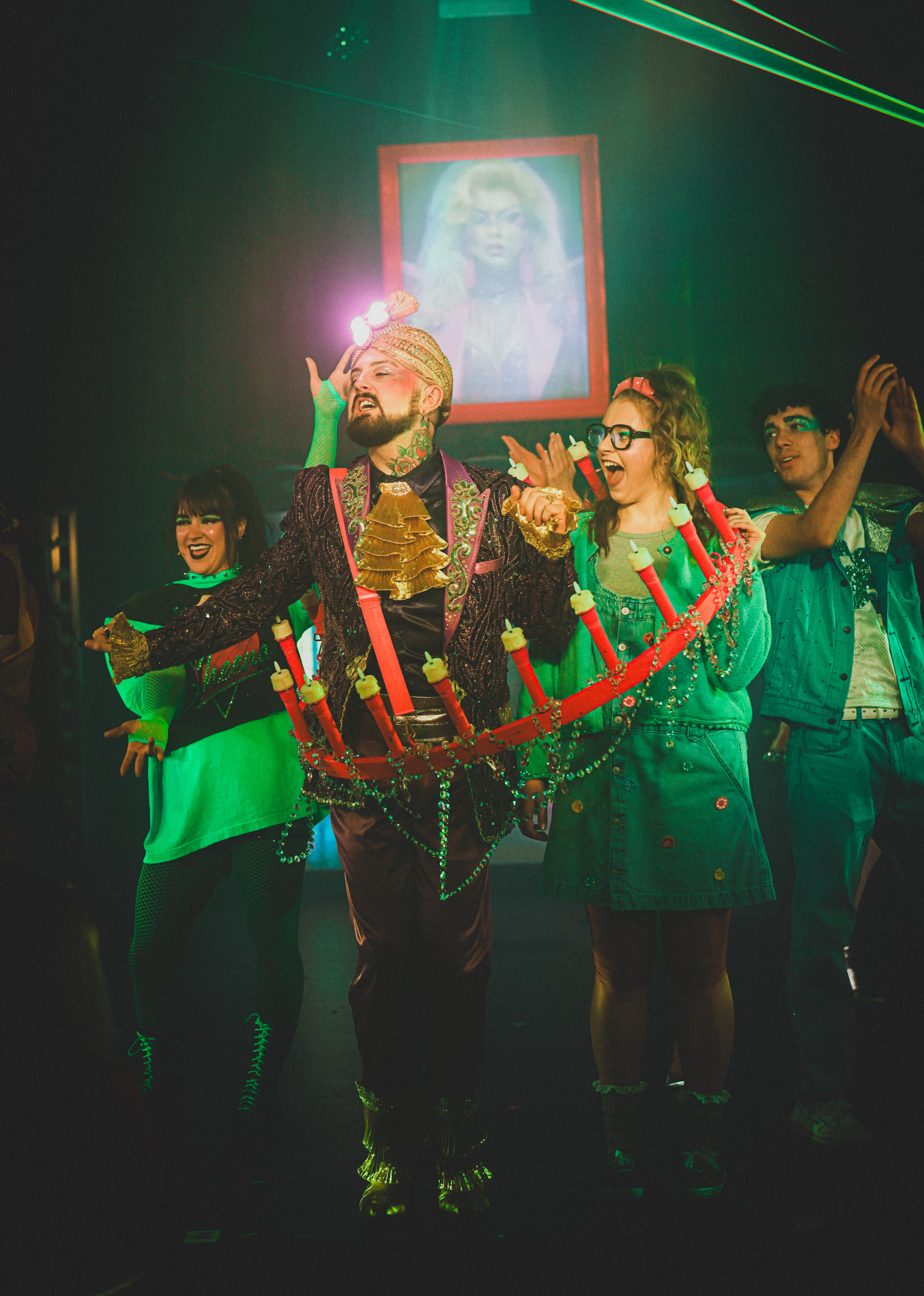 Onboard Virgin’s brand new ship, we dreamed up a late-night spectacle that leans hard into 80s nostalgia—equal parts camp, spooky and sexy.