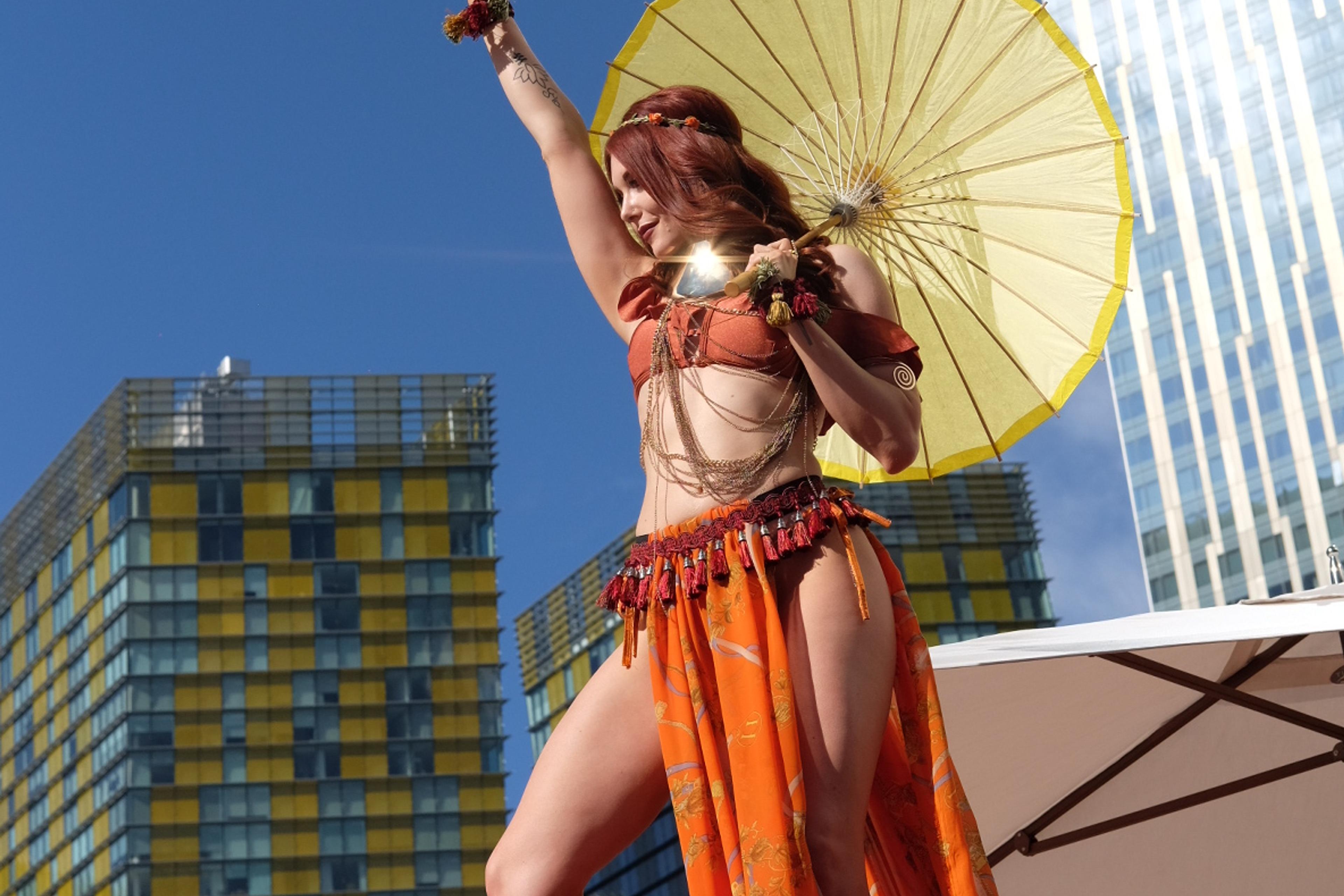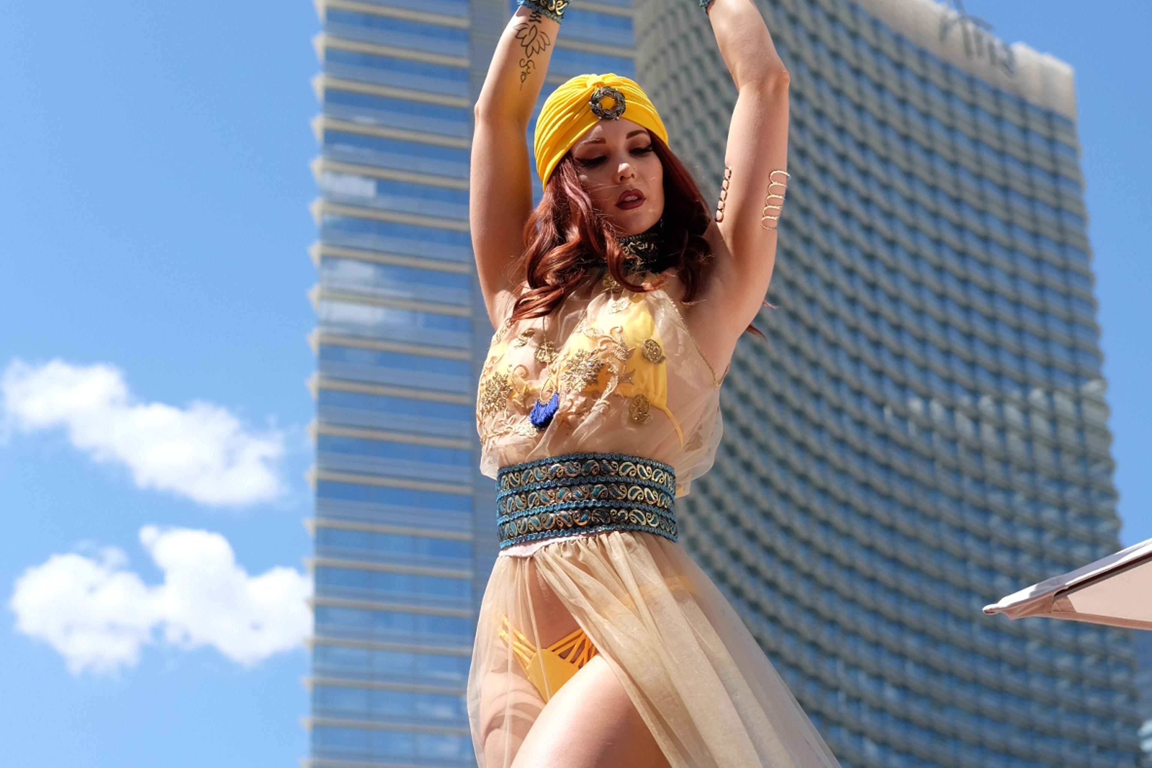 Immersive Dance Experiences: Environmental performance dancers and salsa specialists were incorporated as entertainers and interactive visual art pieces. Their thematic costumes and engaging performances transformed the space, transporting guests from Las Vegas to a mystical, vibrant oasis.